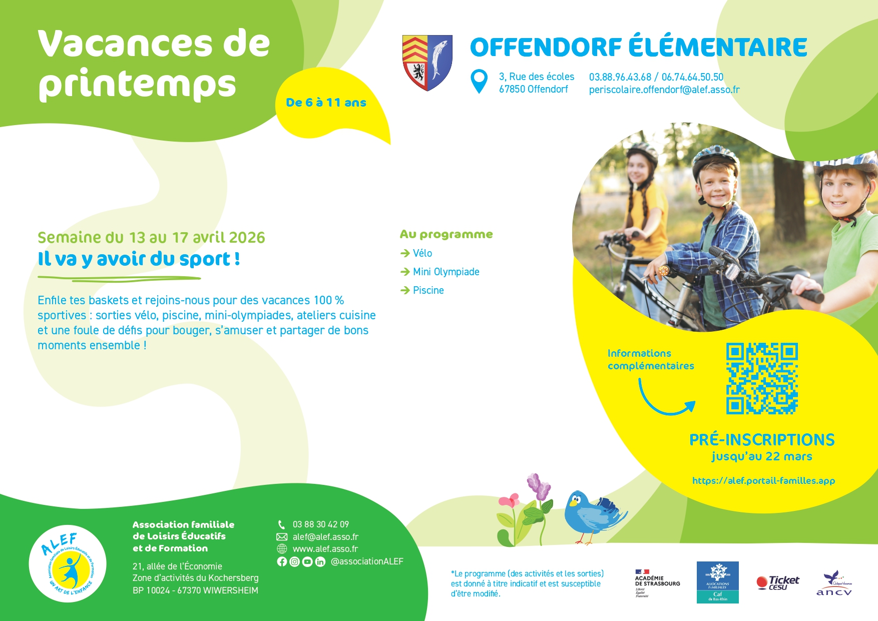 Rejoins le périscolaire élémentaire pour des vacances 100% sportives du 13 au 17 avril, pour bouger, s'amuser et partager de bons moments !