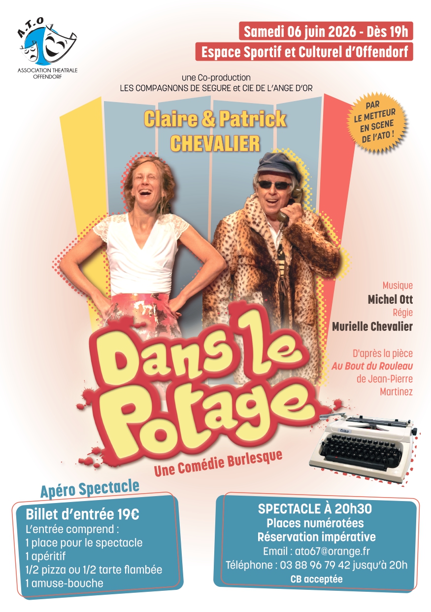 Le samedi 6 juin 2026, dès 19h à l'ESCO, plongez dans une comédie burlesque "Dans le potage", d'après la pièce "Au bout du rouleau" de Jean-Pierre MARTINEZ.